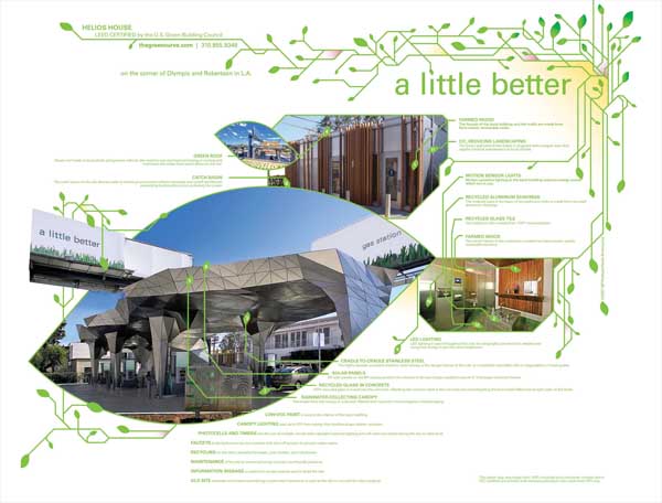 アメリカの従来のガソリンスタンドとは異なり、エコロジーを意識し、地球に優しいガソリンスタンドとして設計されている。