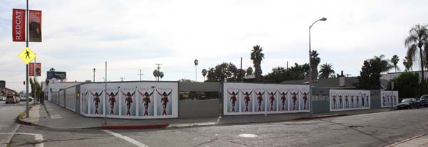 [写真:ハリウッドの工事現場で見かけた"This Is It"な光景。塀がすべてポスターという粋な計らい]