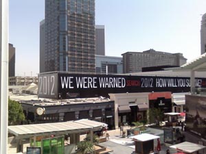 「ザ・ディ・アフター・トゥモロー」「インディペンデンス・ディ」「Godzilla」等で知られるローランド・エメリッヒ監督の最新作で、ディザスター映画「2012」の全米公開が11月13日に迫っているが、ここロサンゼルス地方では街中の至る所に広告や看板が出現、そしてYouTubeには最新予告編がアップされる等、公開を前に、既に盛り上がりを見せている。