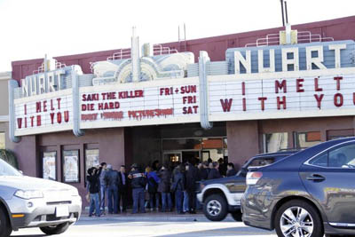 [画像:「SAKI」公開初日で賑わう、Nuart Theater (横山氏提供)]