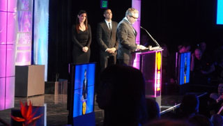 画像:檀上でコメントを述べる「ゼログラビティ」のアルフォンソ・キュアロン監督、