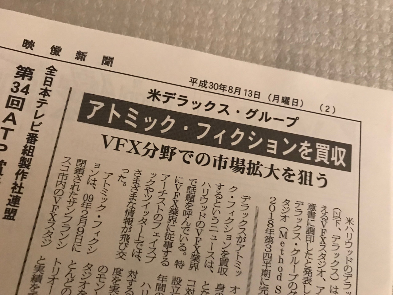 映像新聞8月13日号に「米デラックス・グループ、アトミック・フィクションを買収」という記事を寄稿させて頂きました。